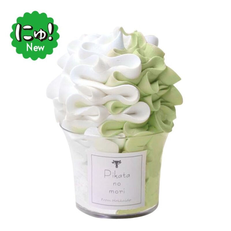 茅部郡森町「ピカタの森 駒ヶ岳牛乳」のソフトクリームは、美しさも味も抜群です!写真は、「芸術の森ソフト シャインマスカット」(651円)。
